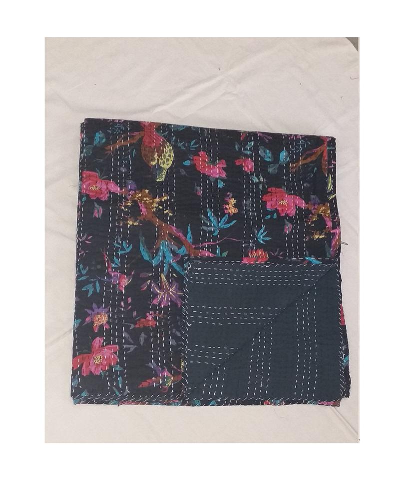Noir oiseau imprimé Kantha couette doux coton couverture léger maison décorative couvre-lit canapé couverture hôtel utiliser jeter