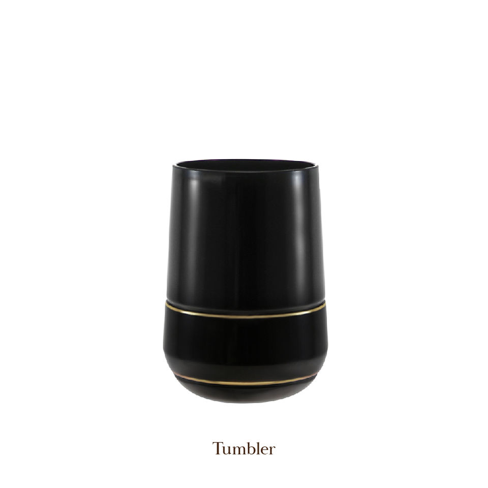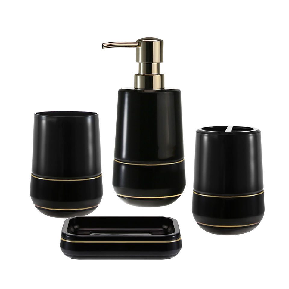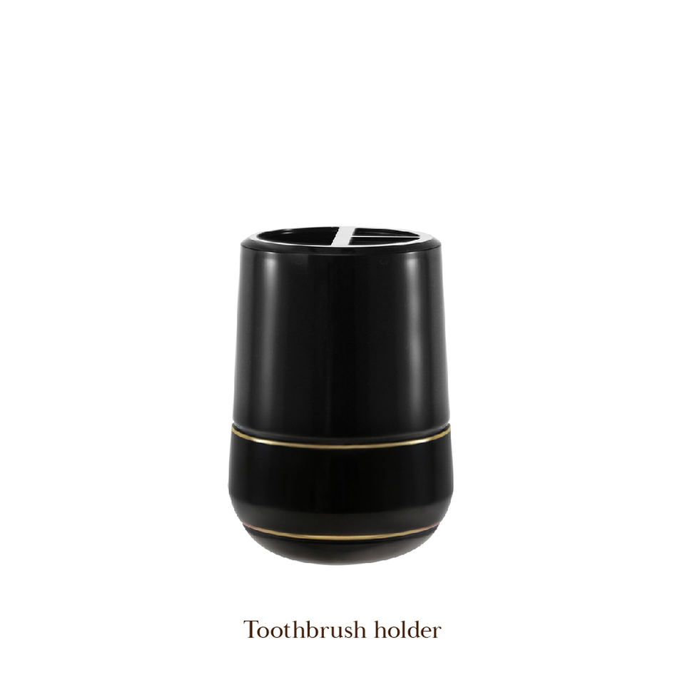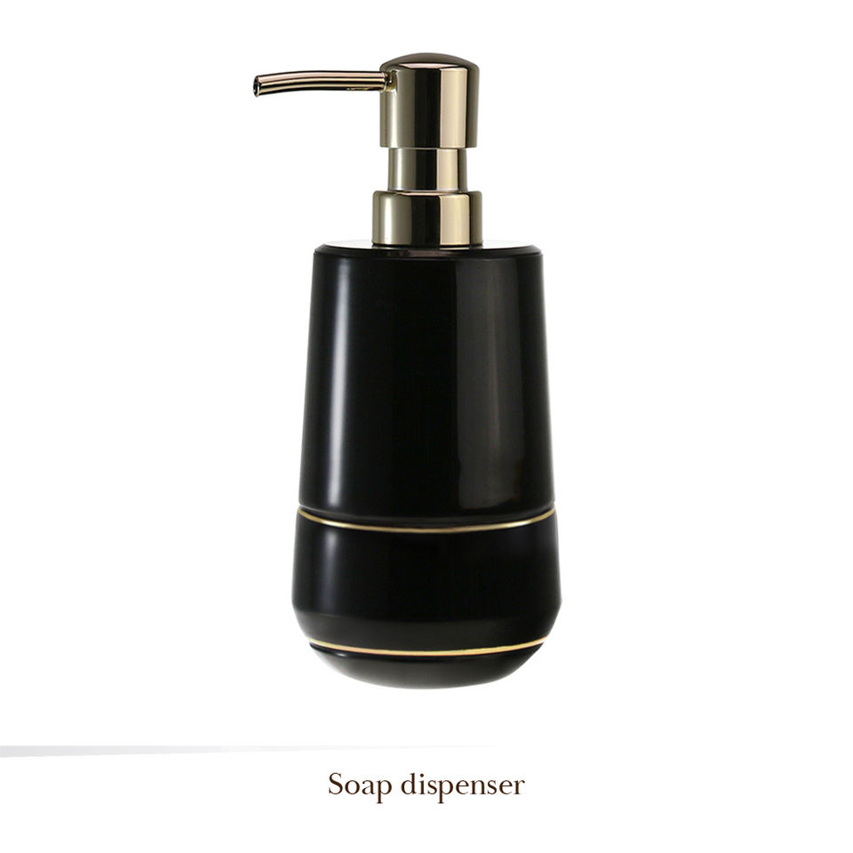 Corps noir bande d'or en plastique ensemble d'accessoires de salle de bain de luxe porte-savon porte-brosse à dents gobelet distributeur de savon porte-brosse de toilette