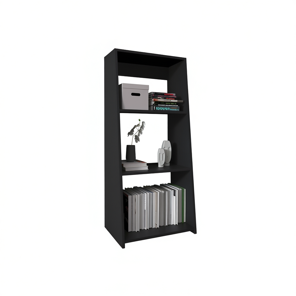 Bibliothèque noire 47 pouces à 3 étagères, meuble de salon moderne et minimaliste, étagère autoportante en bois, rangement domestique