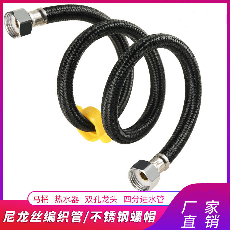 Tuyau tressé noir de 3/8 pouces de diamètre intérieur, tuyau flexible d'alimentation en eau pour robinet de toilette, connexion d'entrée de chauffe-eau