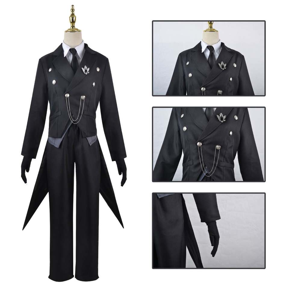 Majordome noir Sebastian Michaelis Cosplay Costume ensemble complet queue d'hirondelle robe de smoking pantalon haut noir diacre carnaval fête