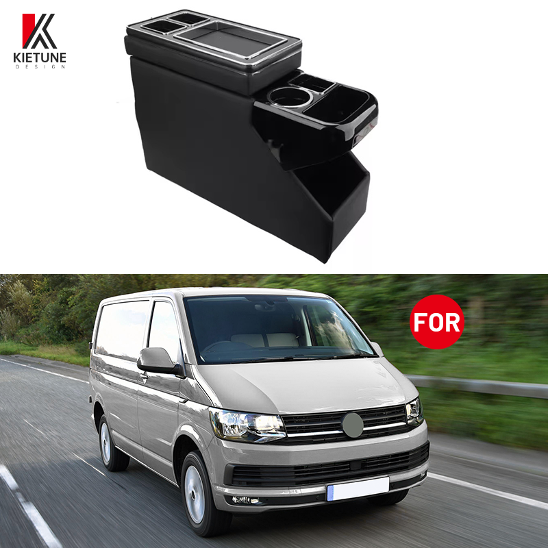 Boîte d'accoudoir de voiture noire avec porte-gobelet pour V.W Transporter Multivan T5 T6 accoudoir de Console centrale de voiture 2003-2020