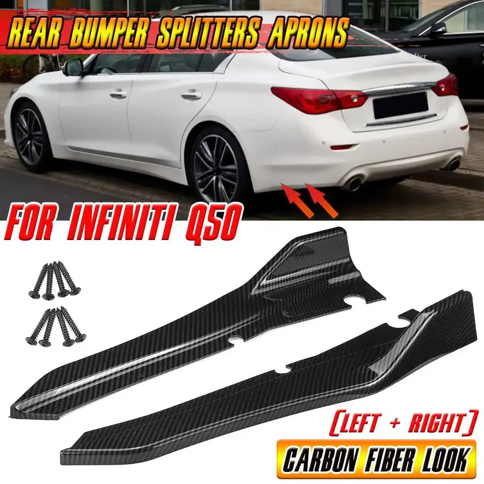 Couvre-lèvres de pare-chocs arrière noir/aspect fibre de carbone pour Infiniti Q50, protection d'angle latérale du pare-chocs arrière
