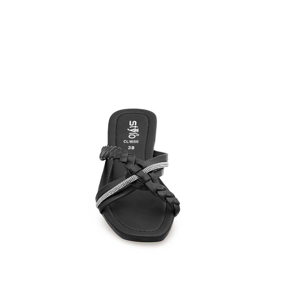 Black Casual Fur Slipper CL1656 Fashionable Comfortable for Slippers