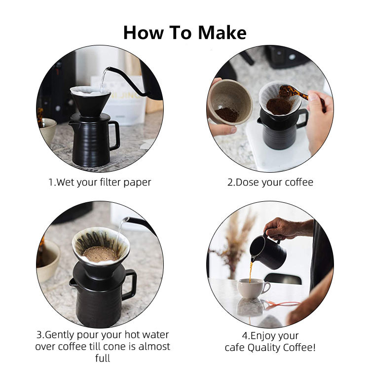 Cafetière à filtre en céramique noire, résistante à la chaleur, pour café filtre, ensemble de cafetière à filtre