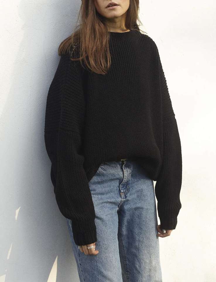 Noir pas cher prix solide pull pull pour femmes col rond coupe ample femmes gros tricot chandails