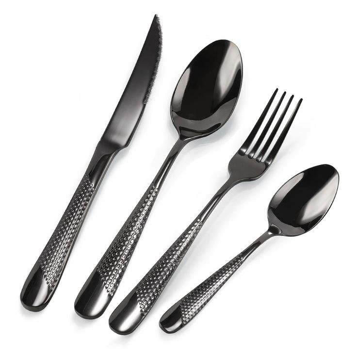 Ensemble de couverts en acier martelé avec revêtement noir, style unique, pour hôtels et restaurants, vaisselle réutilisable
