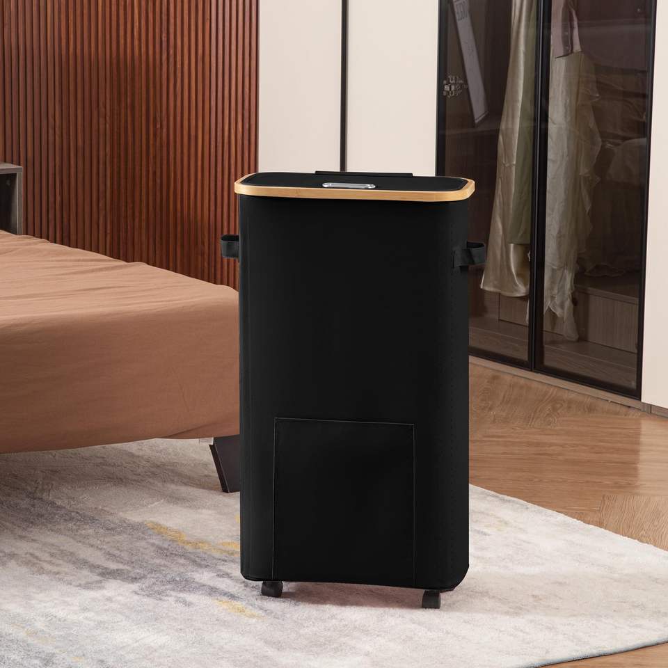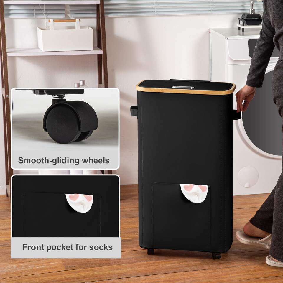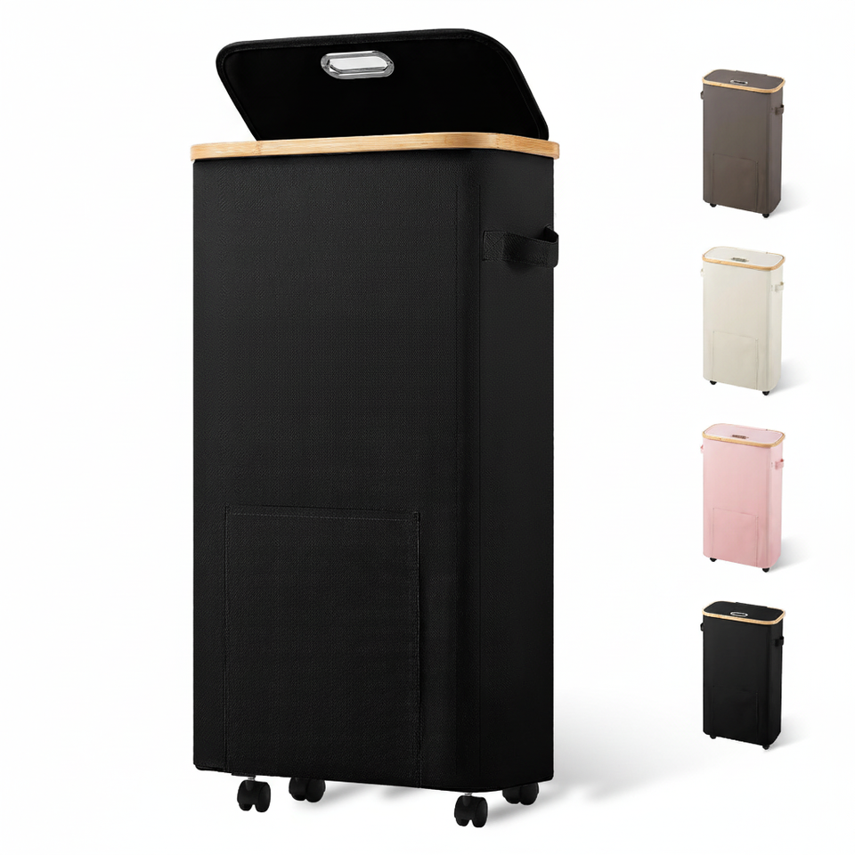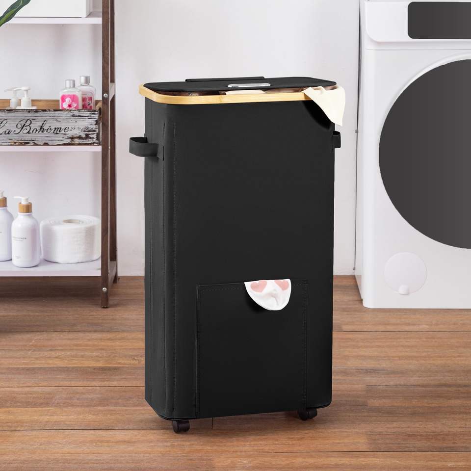 Panier à linge pliable noir, panier à linge étroit avec roulettes, panier à linge compact