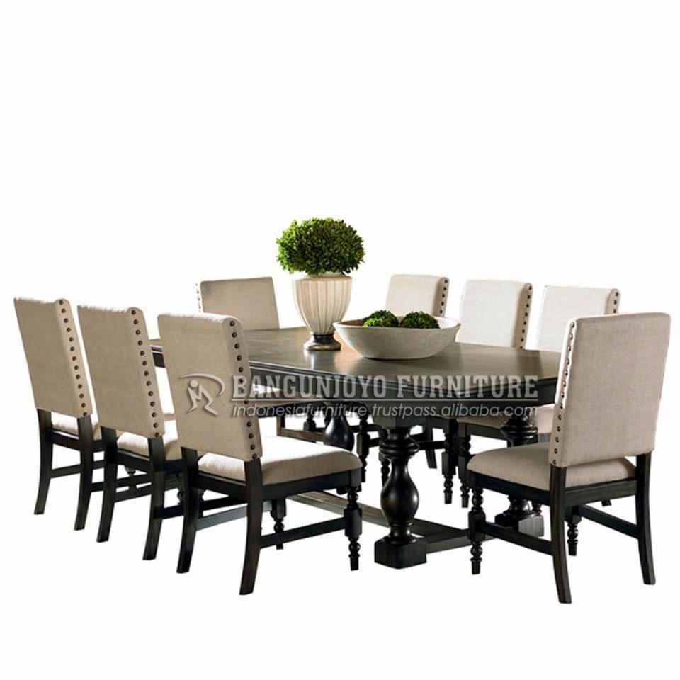 Ensemble de salle à manger antique en noir avec finition en noyer, meubles de restaurant en bois massif de style traditionnel
