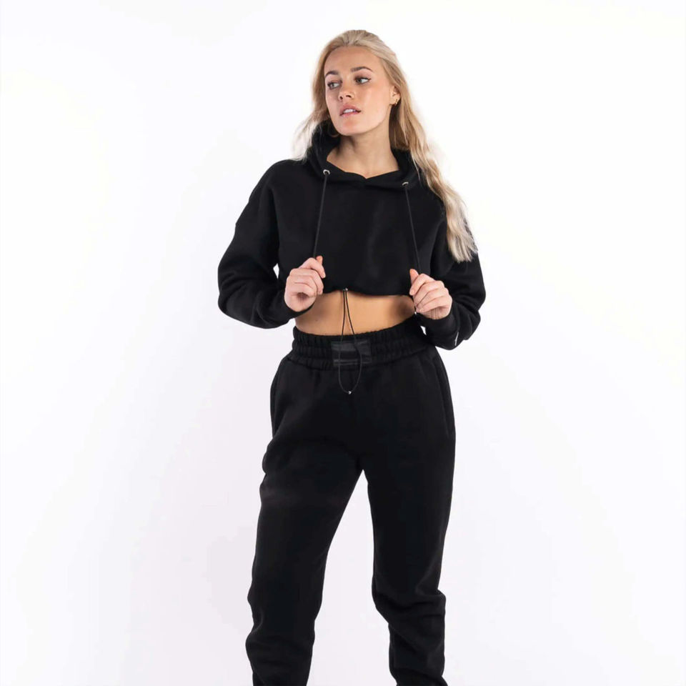 Sweat à capuche court zippé intégral en sherpa 100 % coton noir personnalisé pour femme, anti-plis et respirant