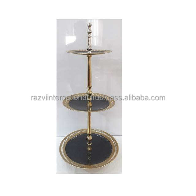Support de gâteau en acier inoxydable à bordure fantaisie de couleur noire pédicule plaqué or pour la décoration de mariage