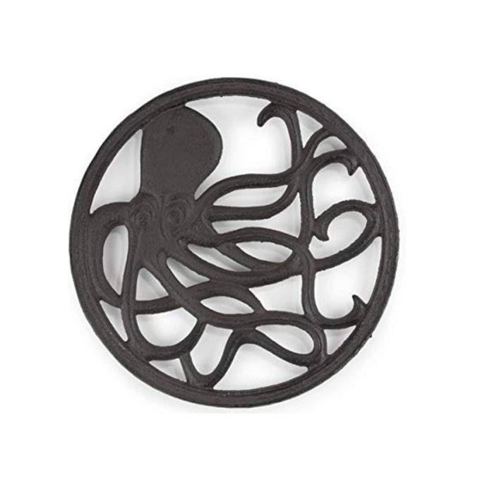 Trivet en aluminium métallique de luxe, design pieuvre, finition noire, résistant à la chaleur