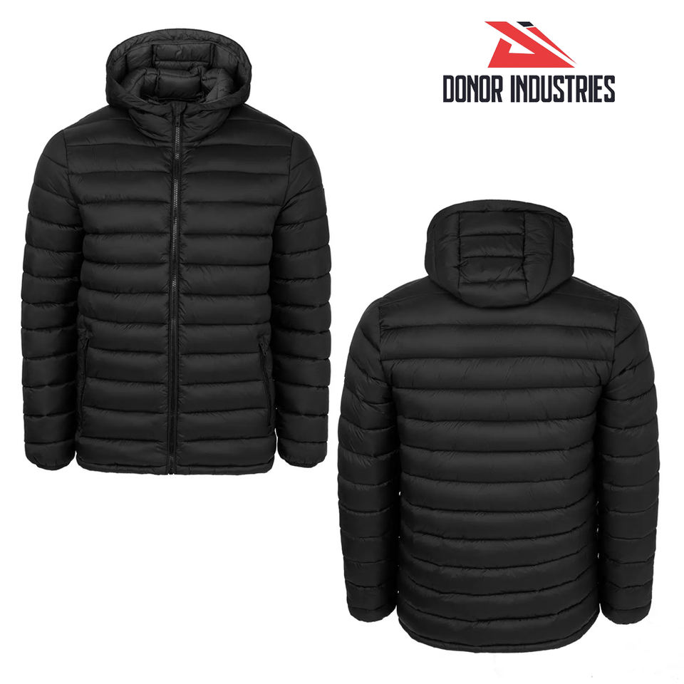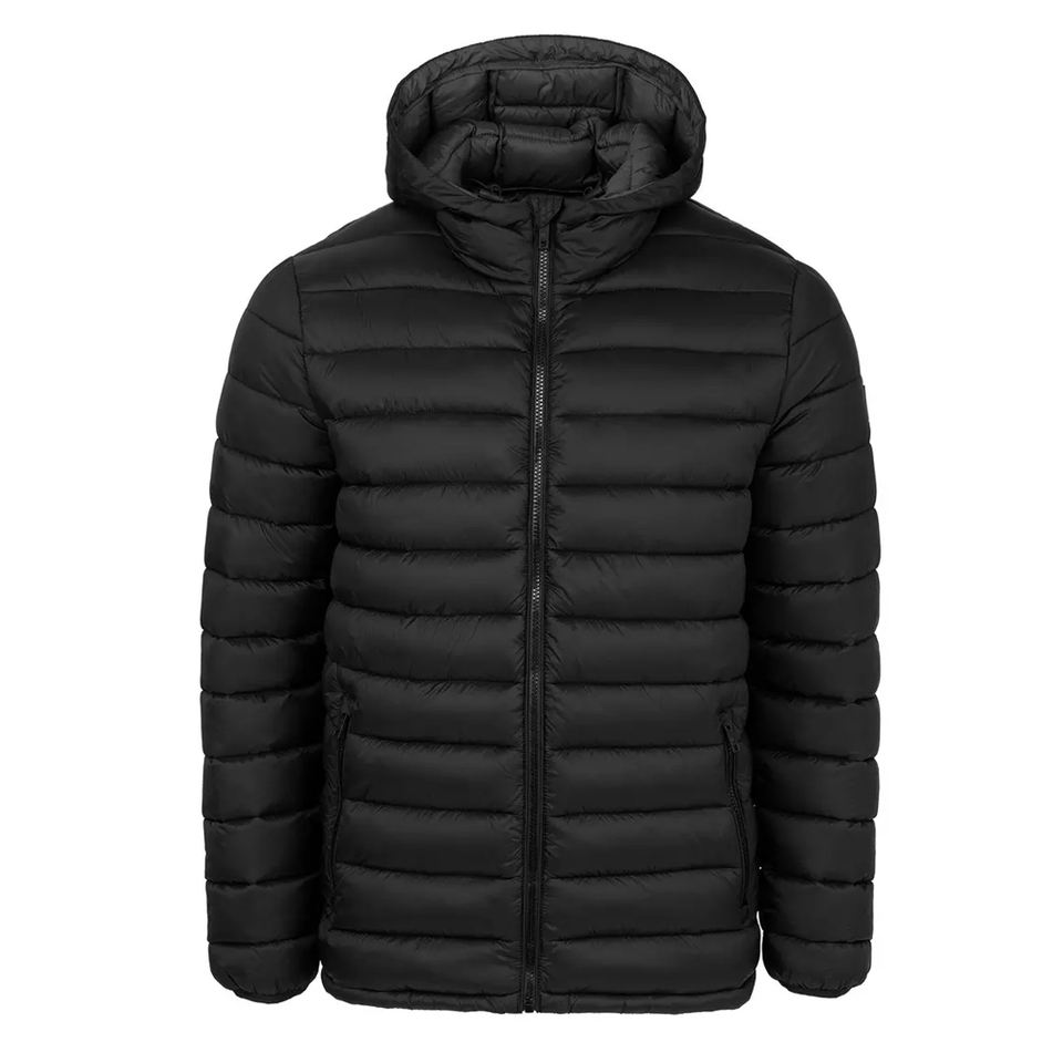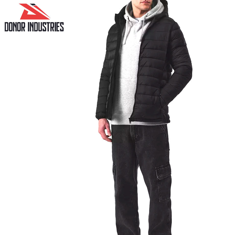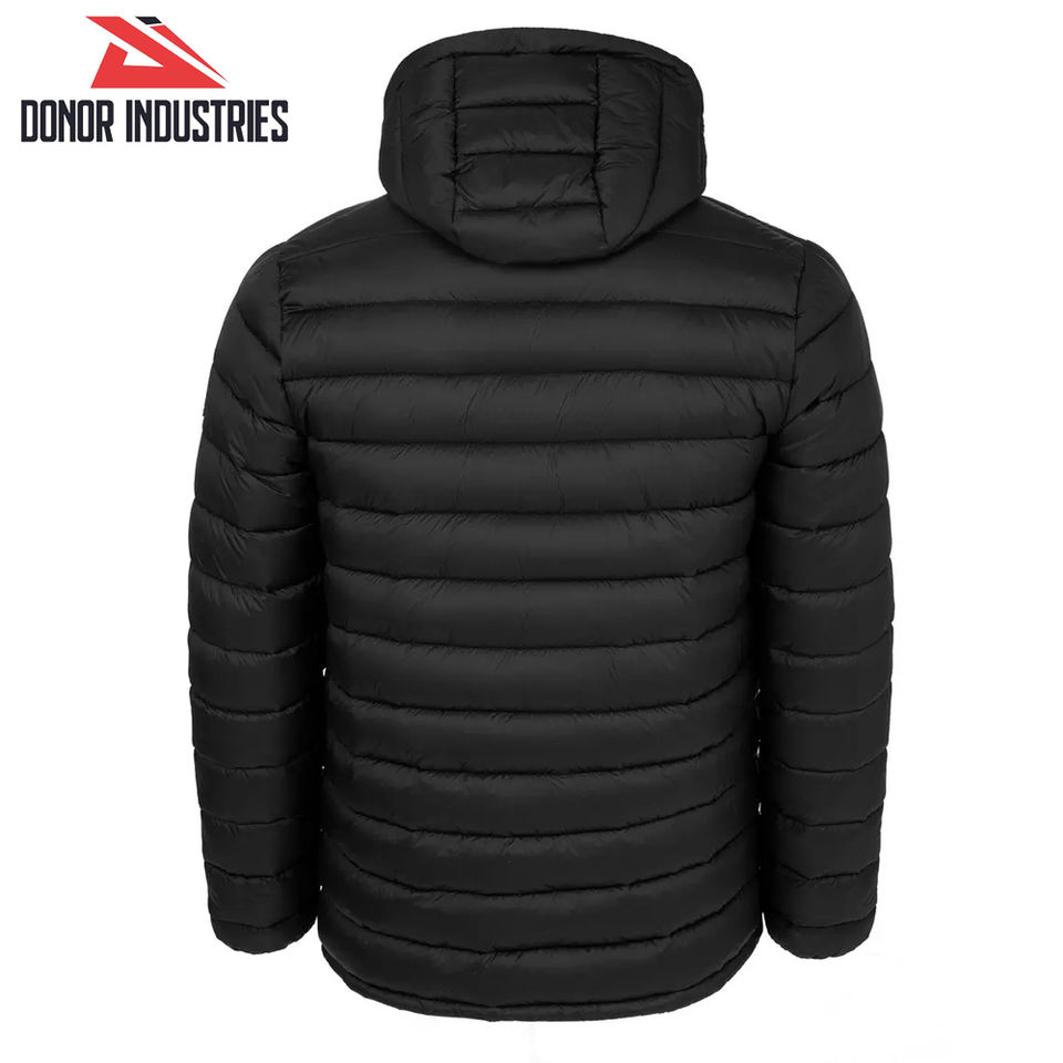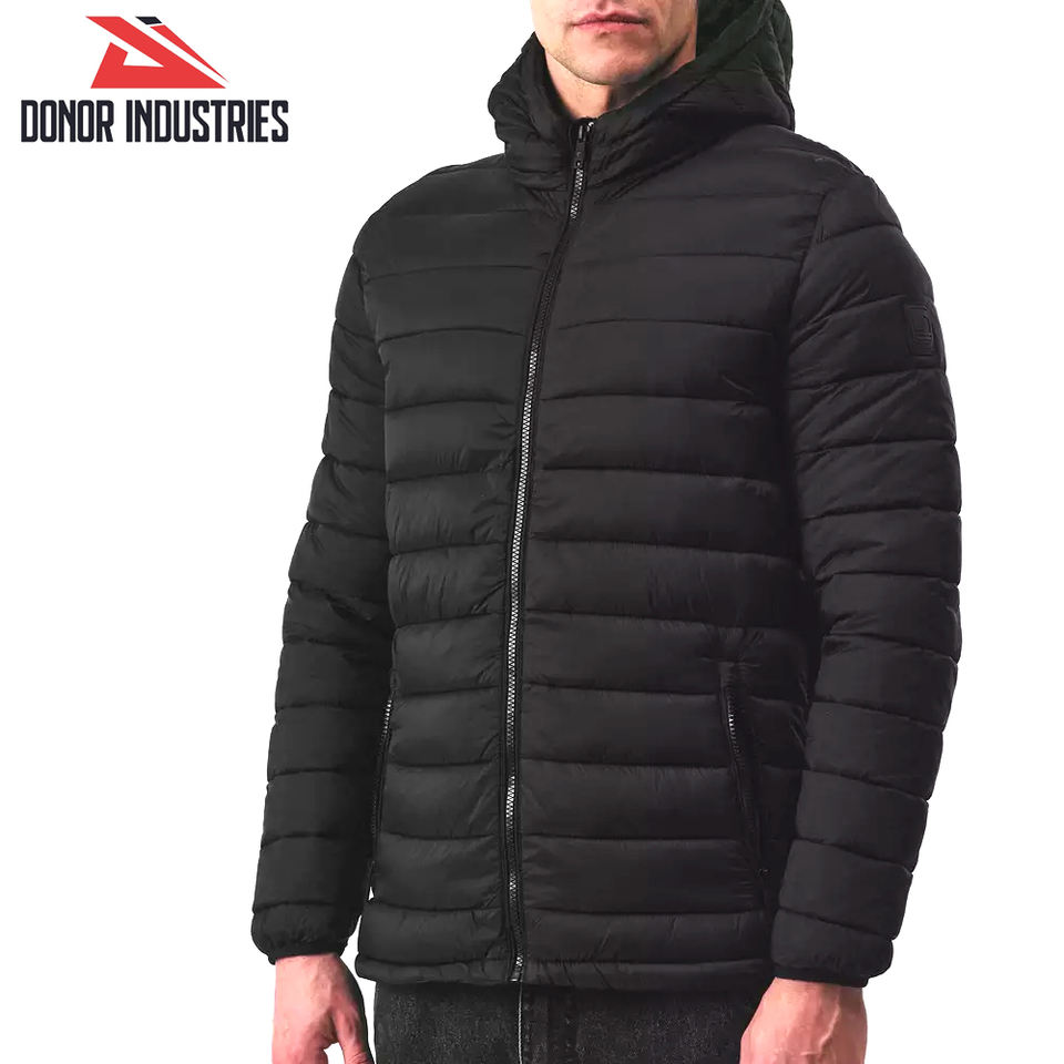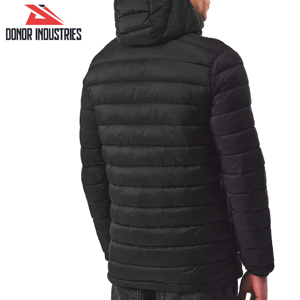 Black Color Hooded Full Zipper Customizable Polyester/Nylon Comfortable Breathable Windproof Men's Outdoor Bubble Jacket