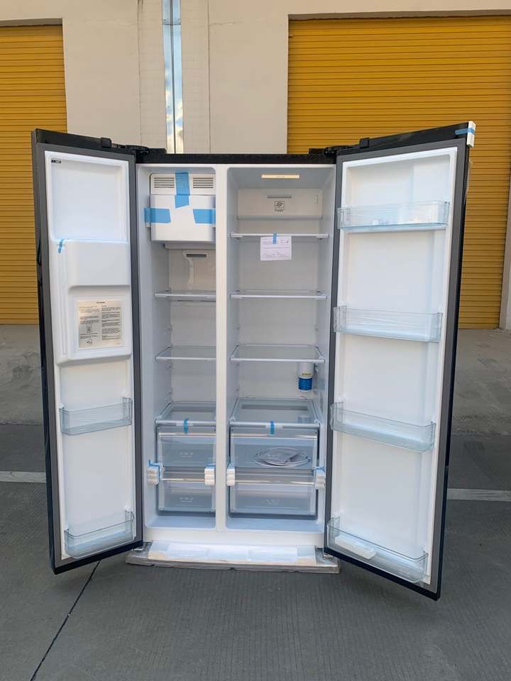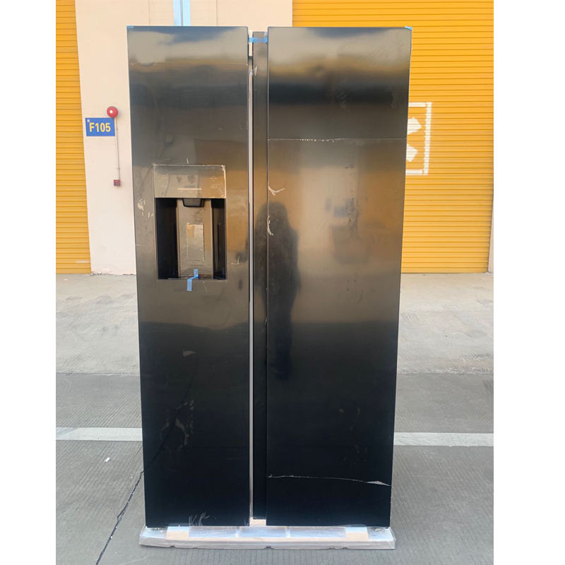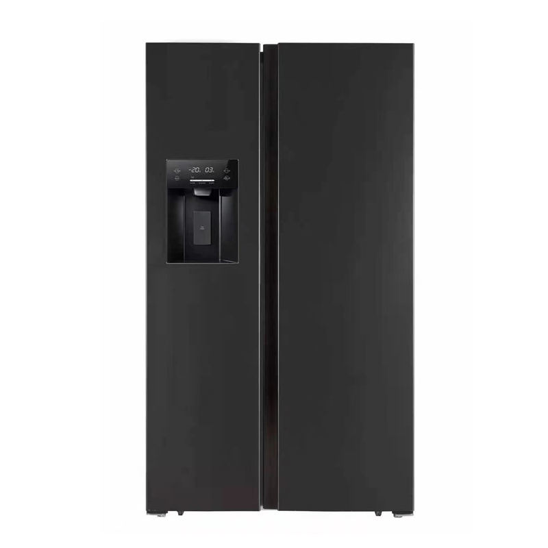 Réfrigérateur à double porte côte à côte de couleur noire avec machine à glaçons et distributeur d'eau 552L