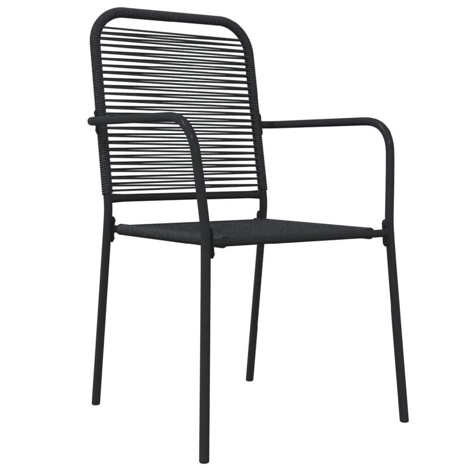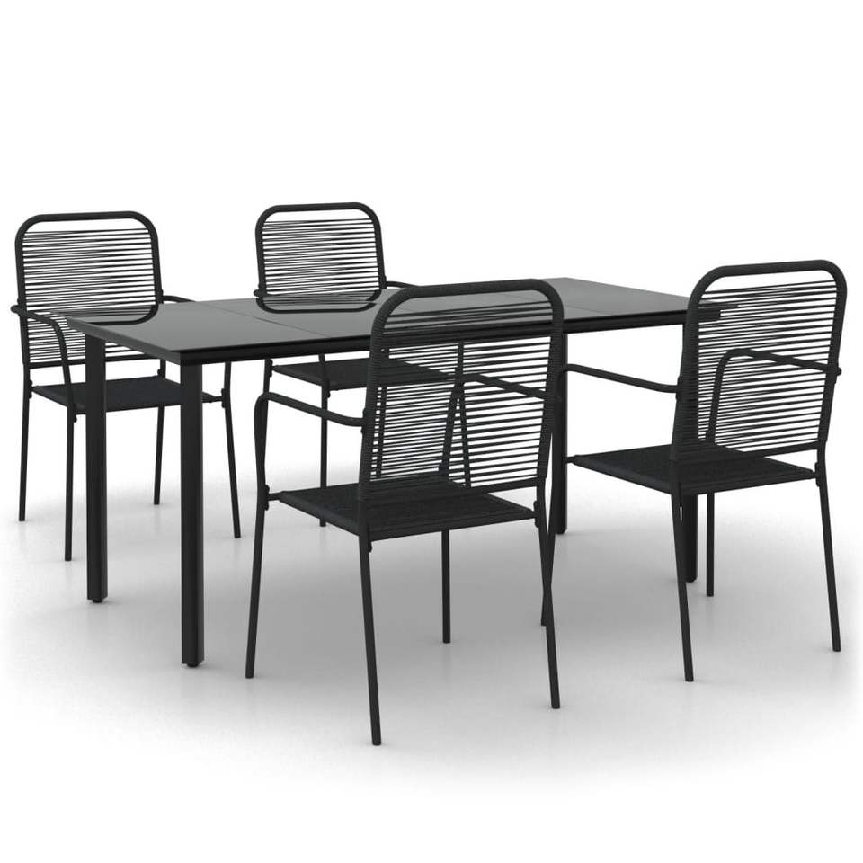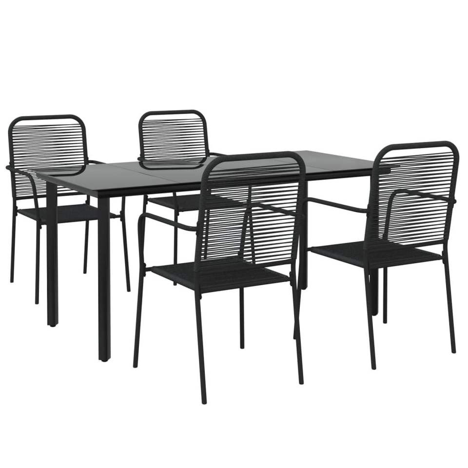 Ensemble de salle à manger de jardin en corde de coton noir avec acier thermolaqué et verre, mobilier d'extérieur durable