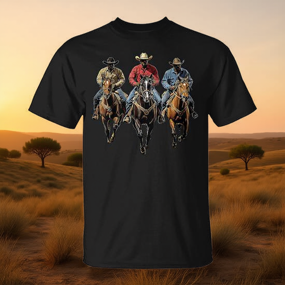 T-shirt noir Cowboy Western Country Texas Rodeo pour hommes, taille L