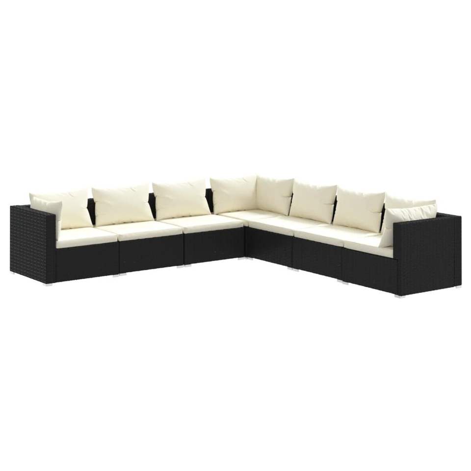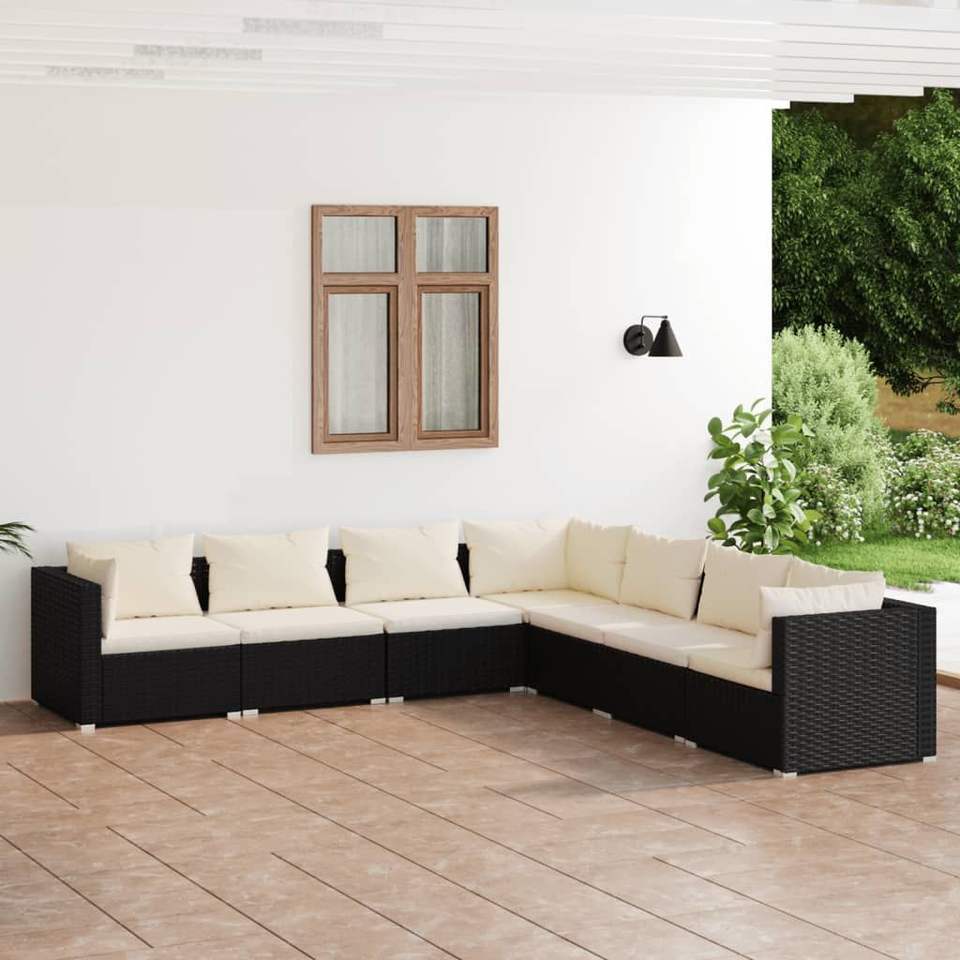 Ensemble de salon de jardin en rotin noir crème, mobilier d'extérieur 6 places, design contemporain