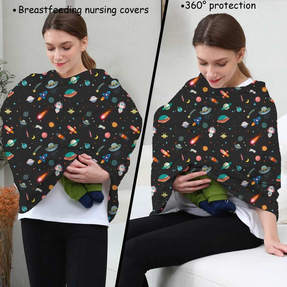 Housse de siège auto noire à motif spatial créatif pour bébés, couverture d'allaitement multi-usage