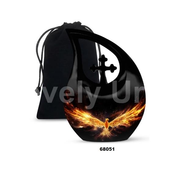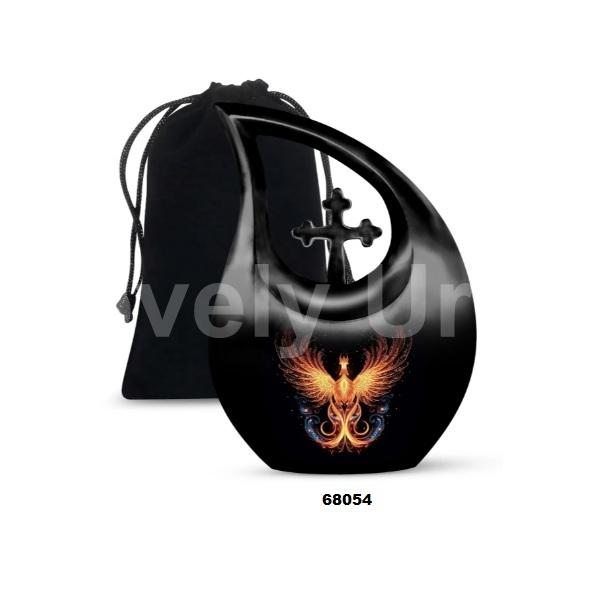 Urne de crémation d'oiseau de Phoenix de larme de croix noire pour l'urne funéraire de souvenir de cendres humaines adultes avec le sac gratuit de velours