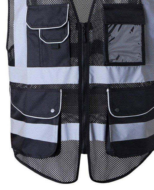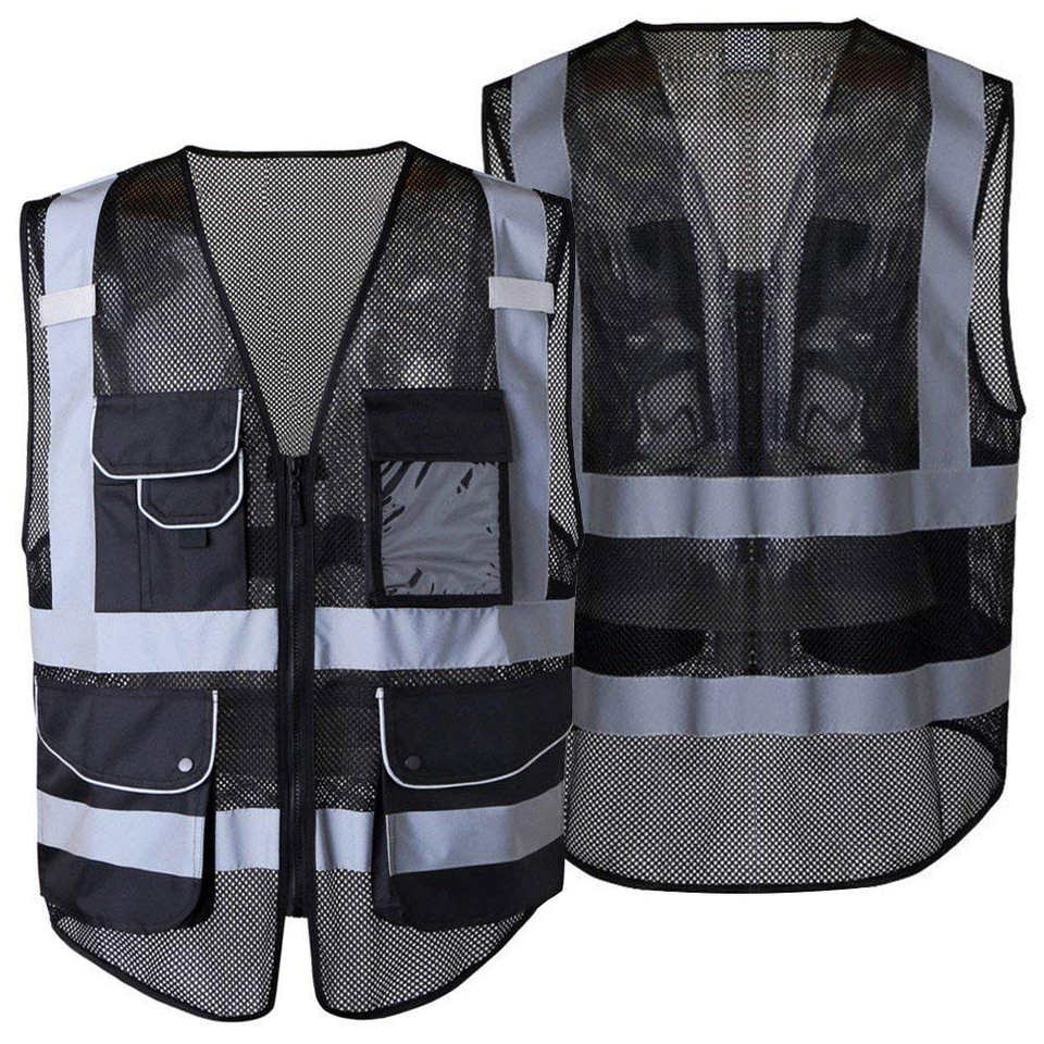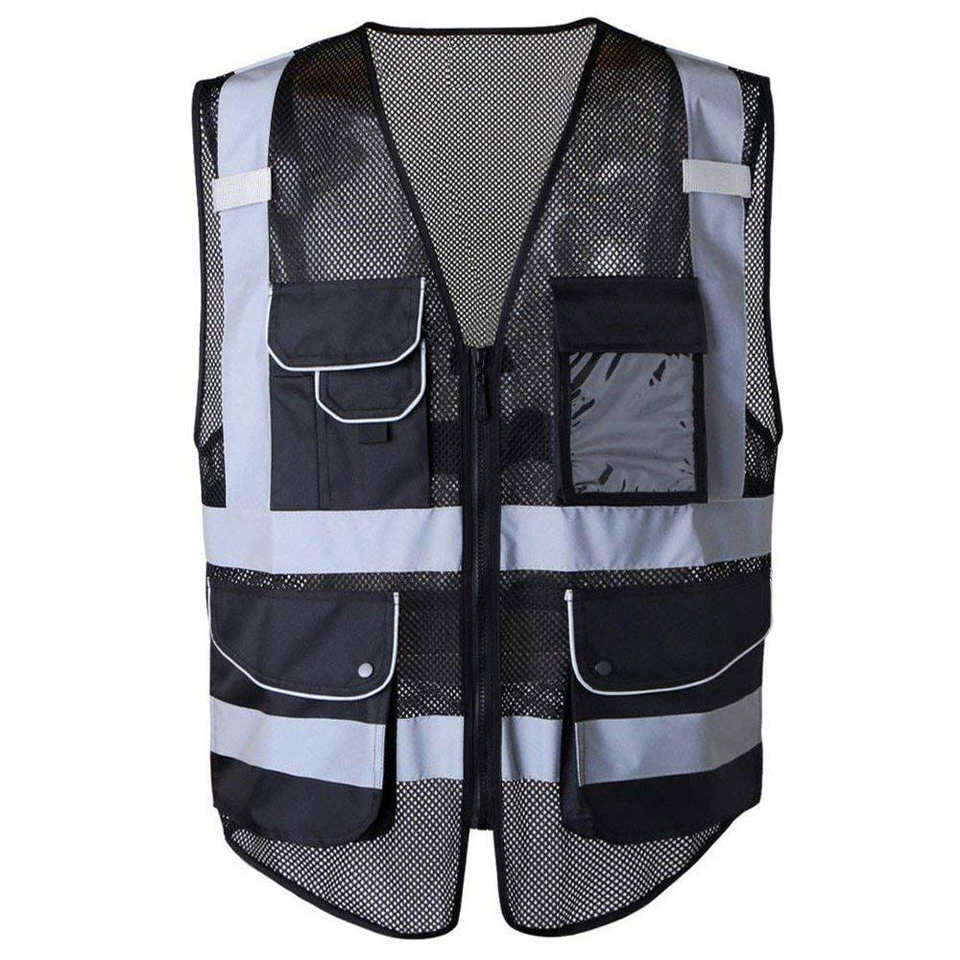 Gilet de sécurité de moto réfléchissant personnalisé noir haute visibilité uniforme de travail de Construction gilet de classe 2 pour le contrôle de la circulation