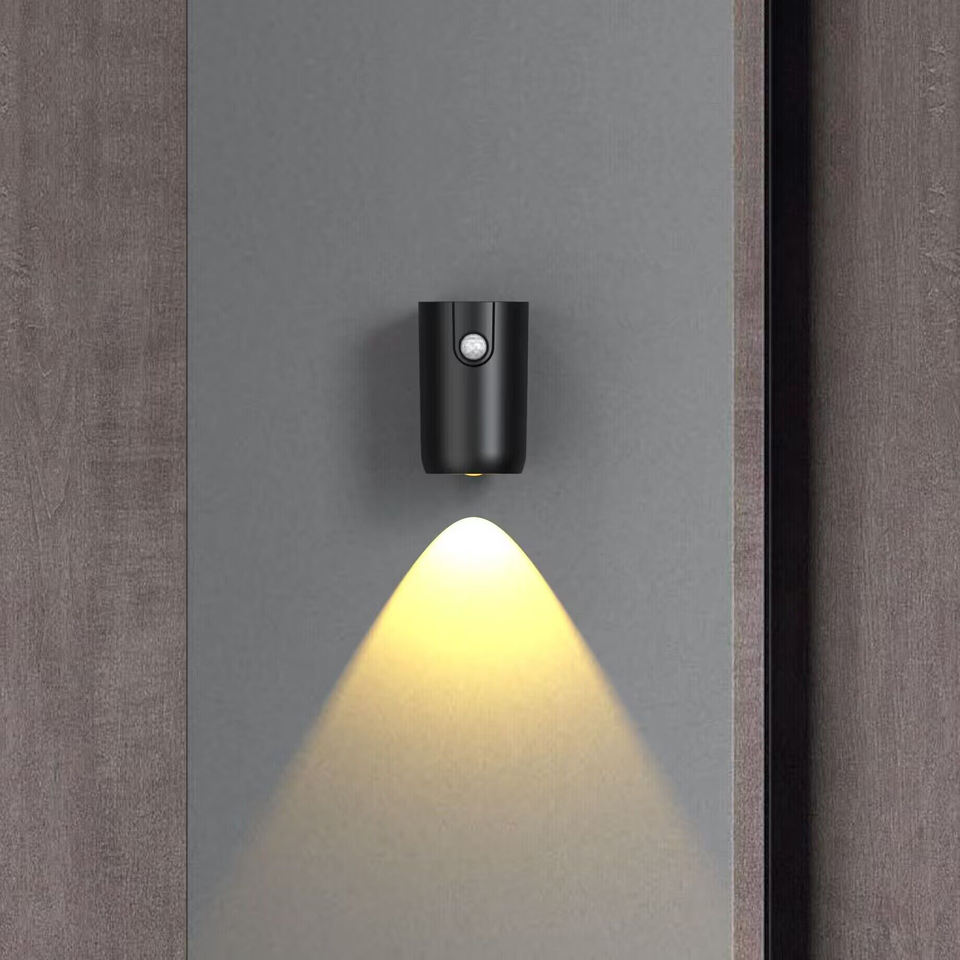 Applique murale LED cylindrique noire rechargeable USB-C avec détecteur de mouvement, culot B22, 3 températures de couleur, 1200 mAh, allumage/extinction automatique, veilleuse d'intérieur