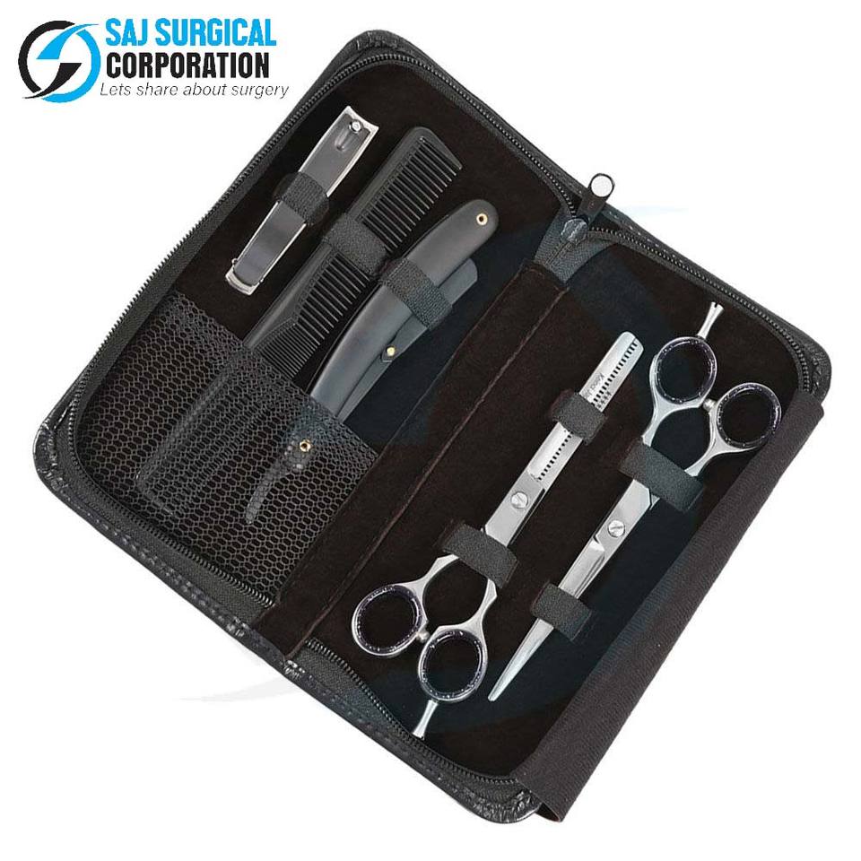 Kit de barbier Design noir 4 pièces ensemble minimaliste ciseaux en acier inoxydable tondeuse peigne finition noir mat élégant Essentials