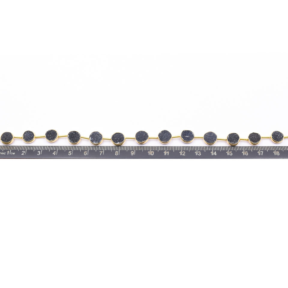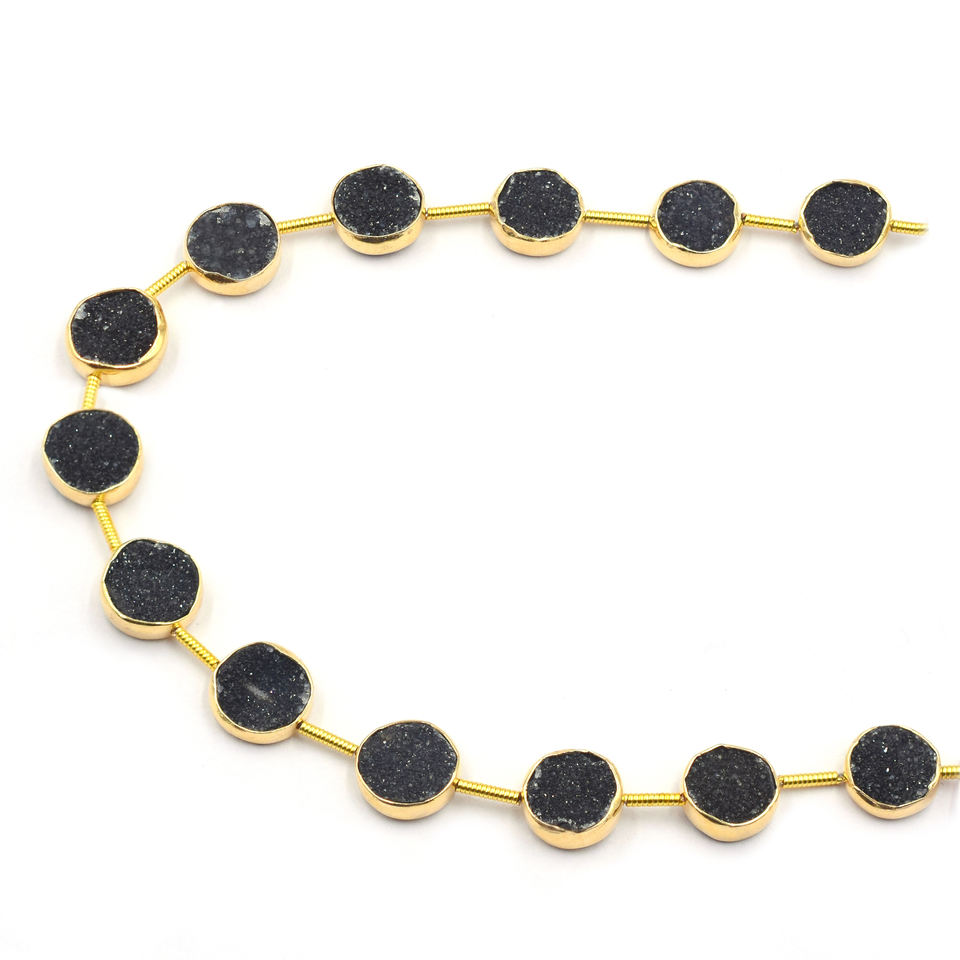 Product Name:Black Druzy Gold Plated Top Straight Drilled 13 Beads Strand