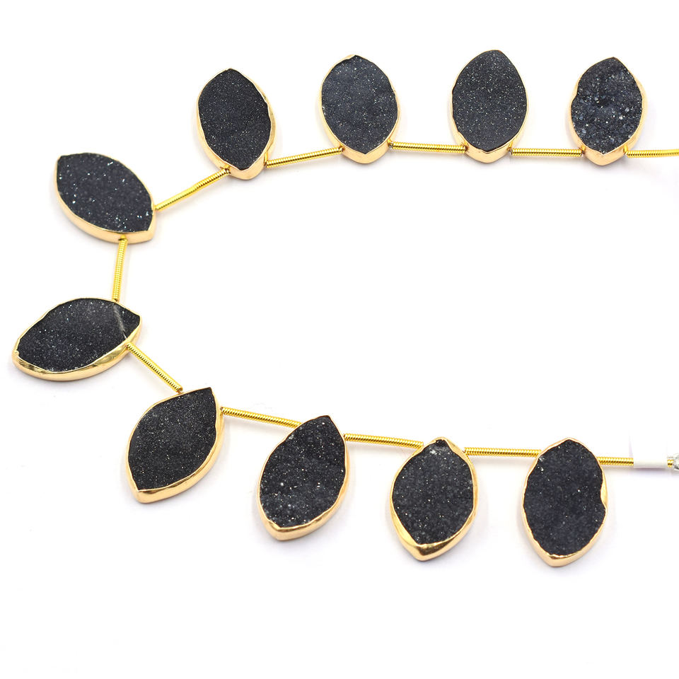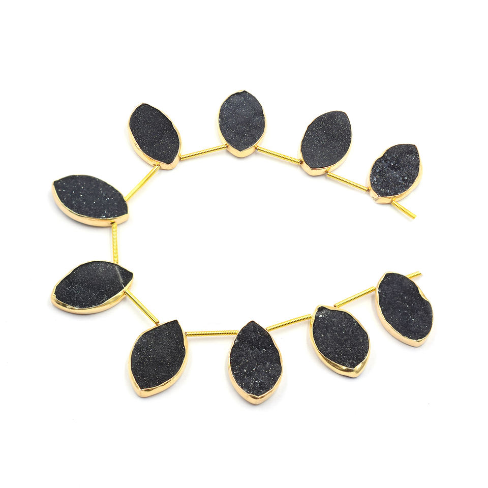 Product Name:Black Druzy Silver Bezel Gold Plated Top Side Drilled 10 Beads Strand