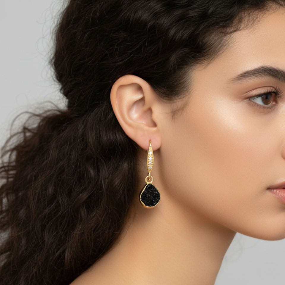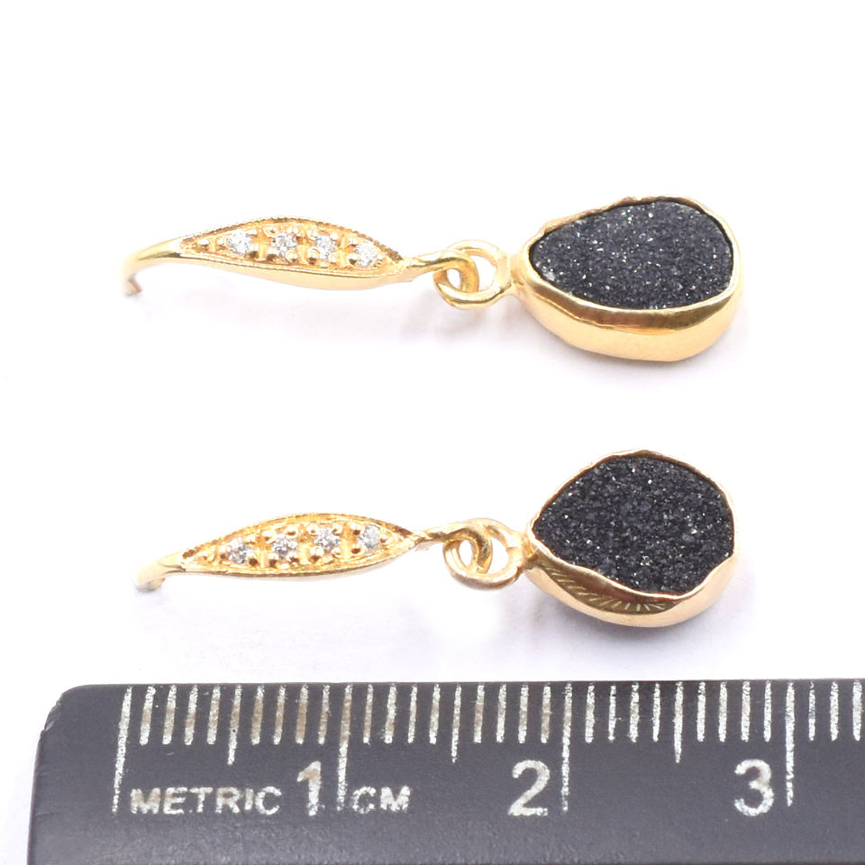 Product Name:Black Druzy Pear Shape With Natural Zircon Silver Bezel Gold Plated