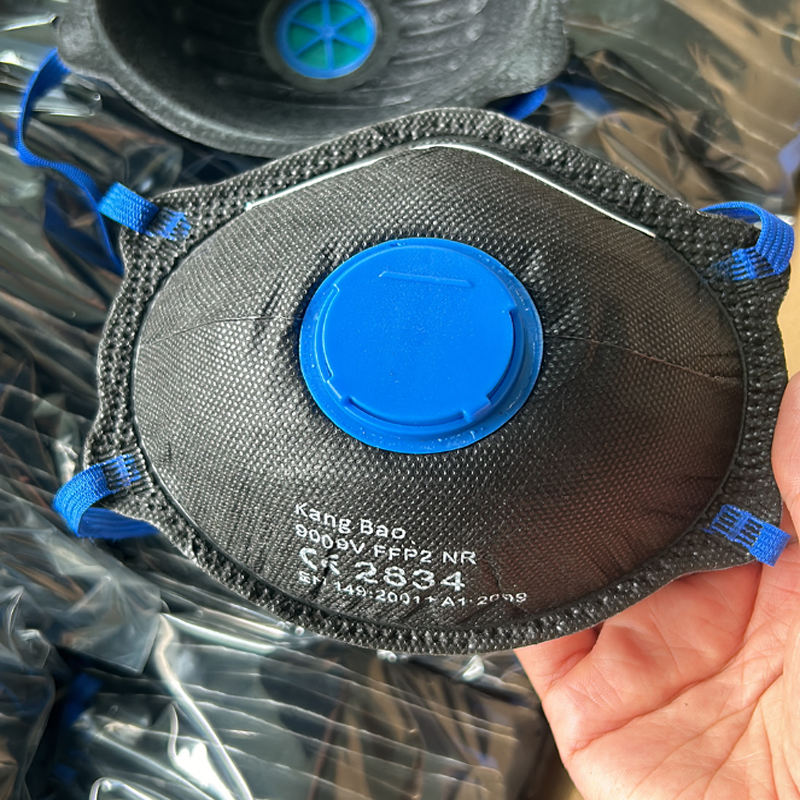 Masque anti-poussière noir FFP2 avec valve, tissu en carbone, couvre-nez EN149 FFP2, chantier de construction, exploitation minière, masque de protection individuelle anti-poussière