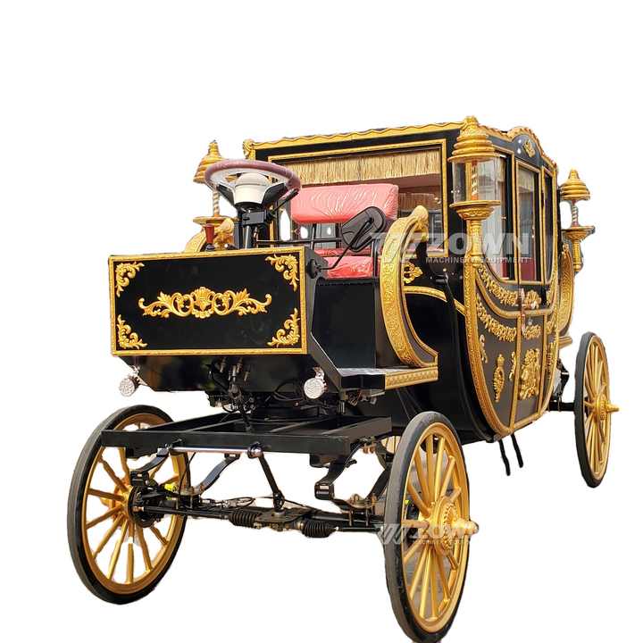 Black Electric Horse Carriage Royal Horse Drawn Carriage Special Transportation Wedding Wagon Horse Carriage