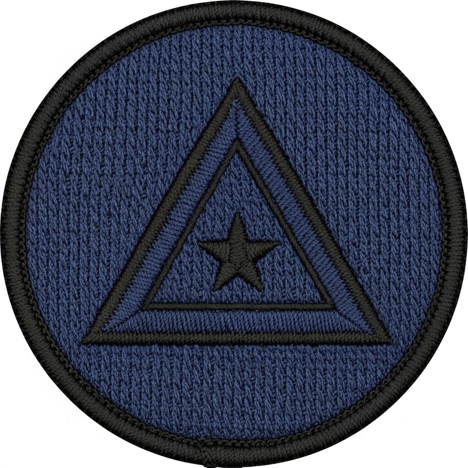 Écusson rond bleu marine brodé noir avec étoile double triangulaire, personnalisé, pour uniforme maçonnique et franc-maçonnerie, à coudre