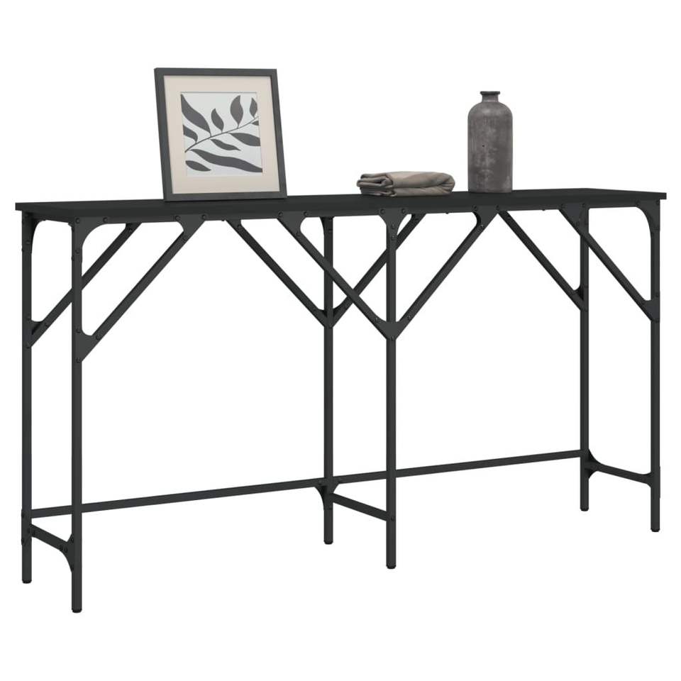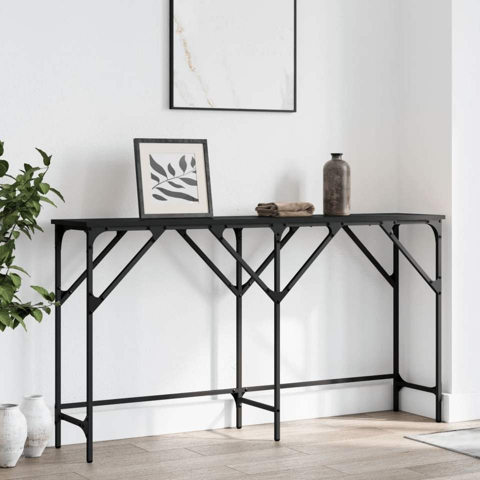 Table console en bois d'ingénierie noir 55,1 x 11,4 x 29,5 po, base tréteau, design industriel, mobilier de salon