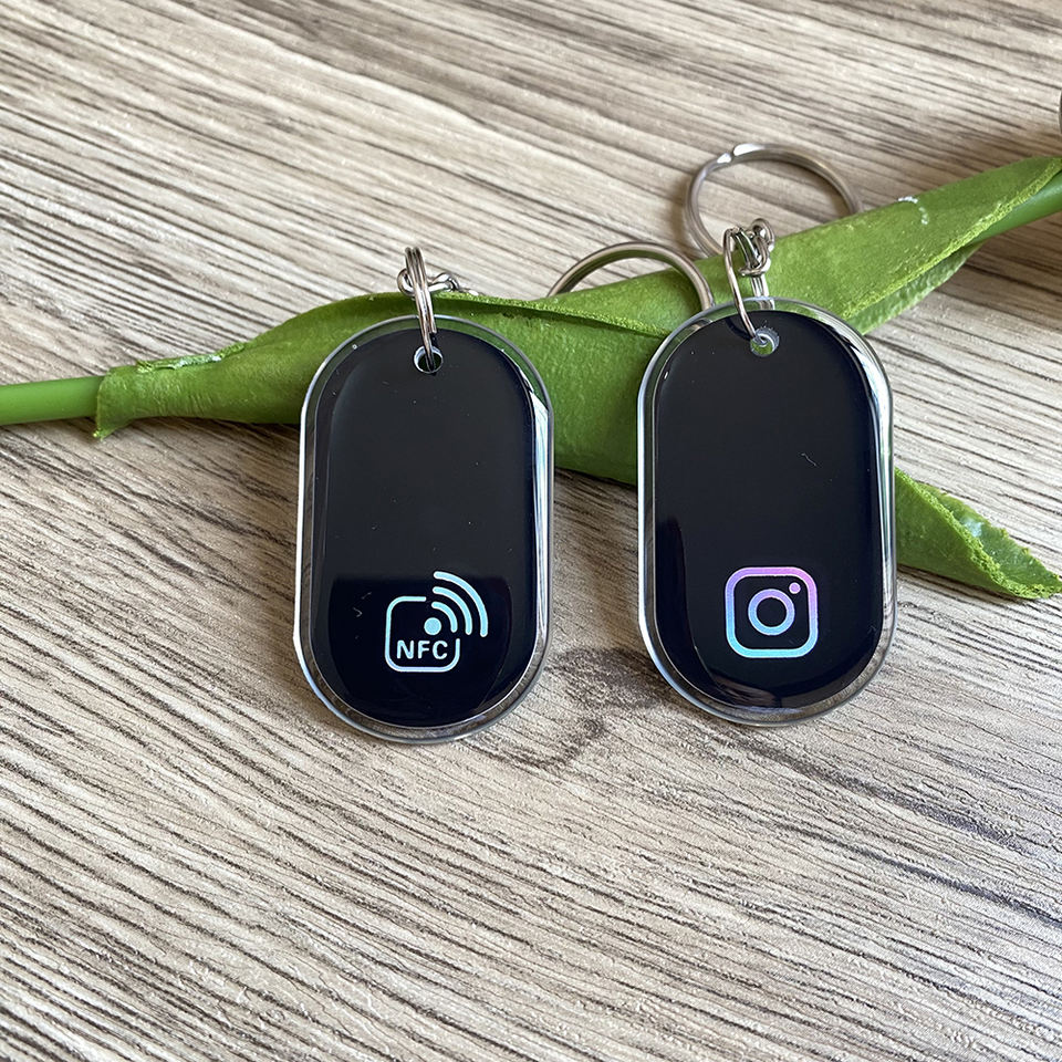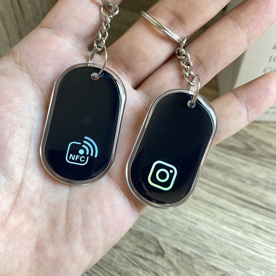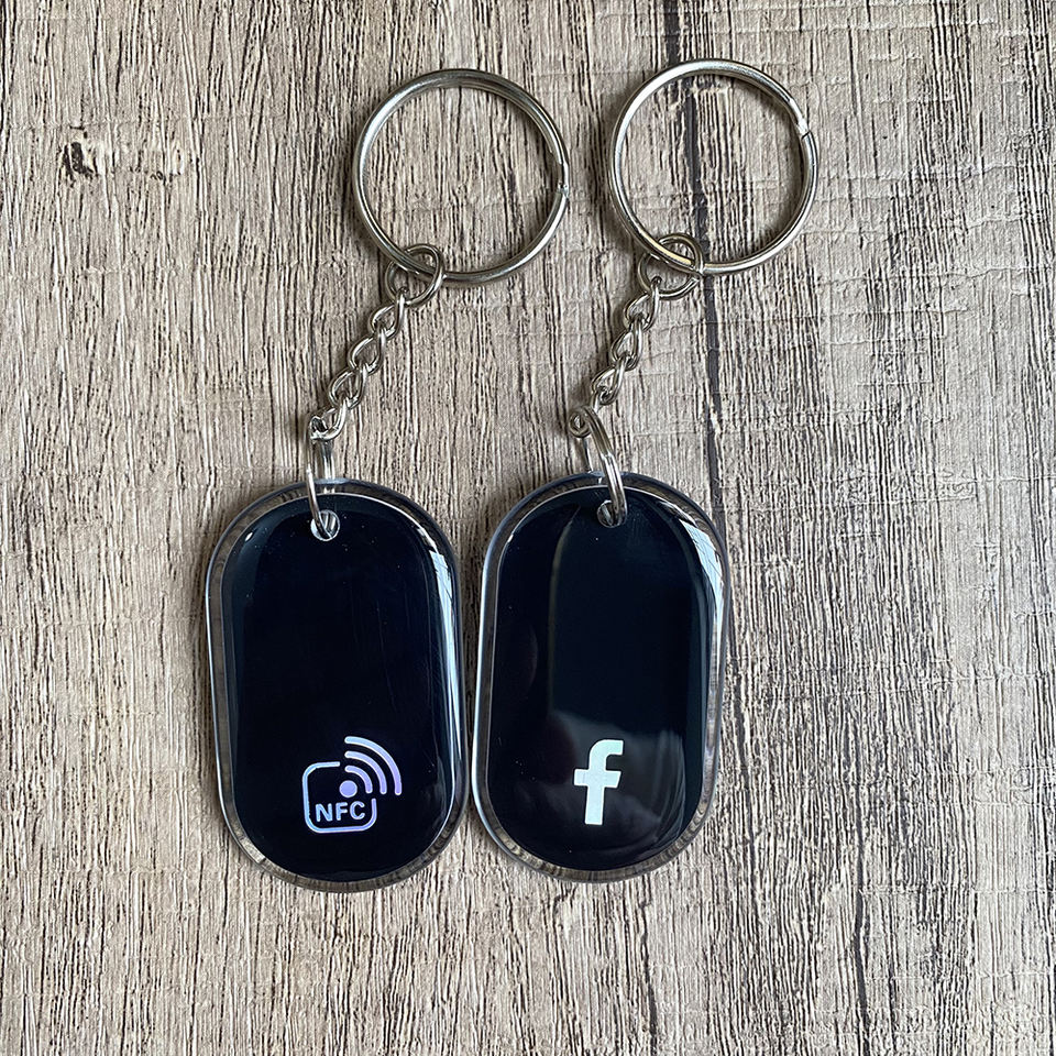 Porte-clés NFC en époxy noir, porte-clés NFC à activation par contact, carte-clé NFC pour les réseaux sociaux Instagram WhatsApp