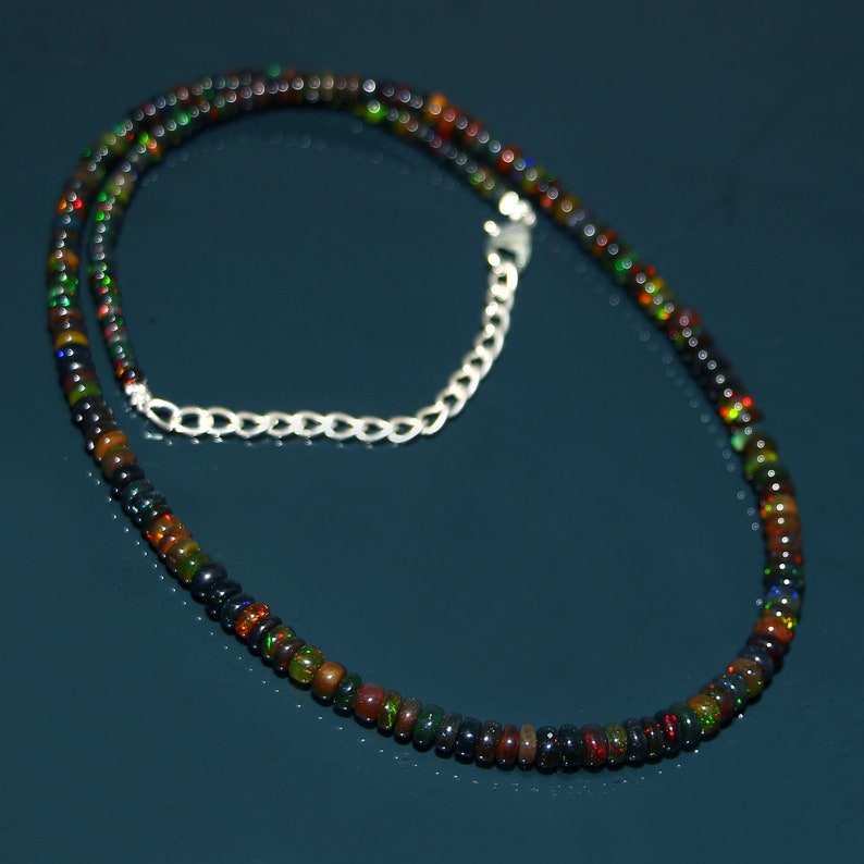 Product Name:Black Ethiopian Fire Opal Beaded Necklace