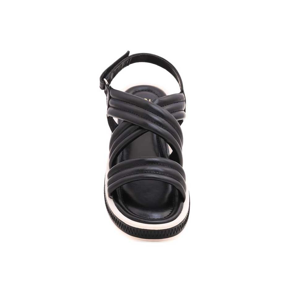 Sandale à talon ouvert noir FR5192 avec semelle intérieure en PVC respirant caractéristiques à la mode Peep Toe fermeture à bouton pour le printemps été