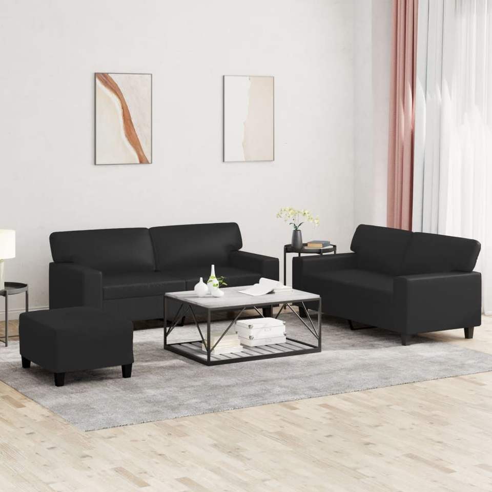 Ensemble de canapé rectangulaire 2 places en similicuir noir pour salon
