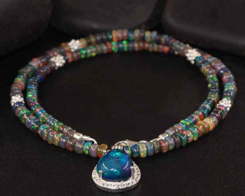 Keyword:Black Fire Ethiopian Opal Beads Glowing Necklace