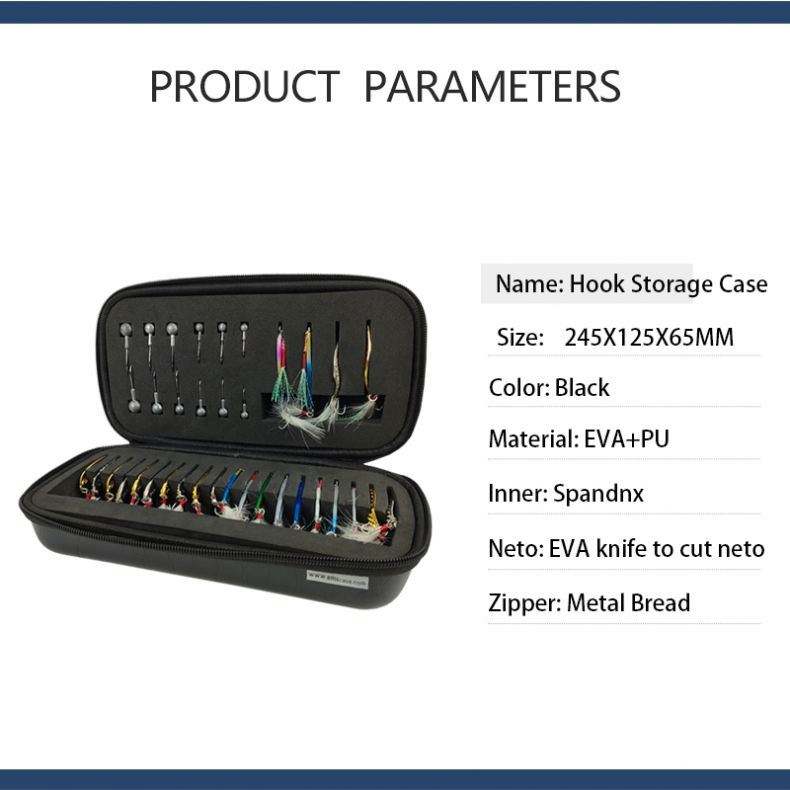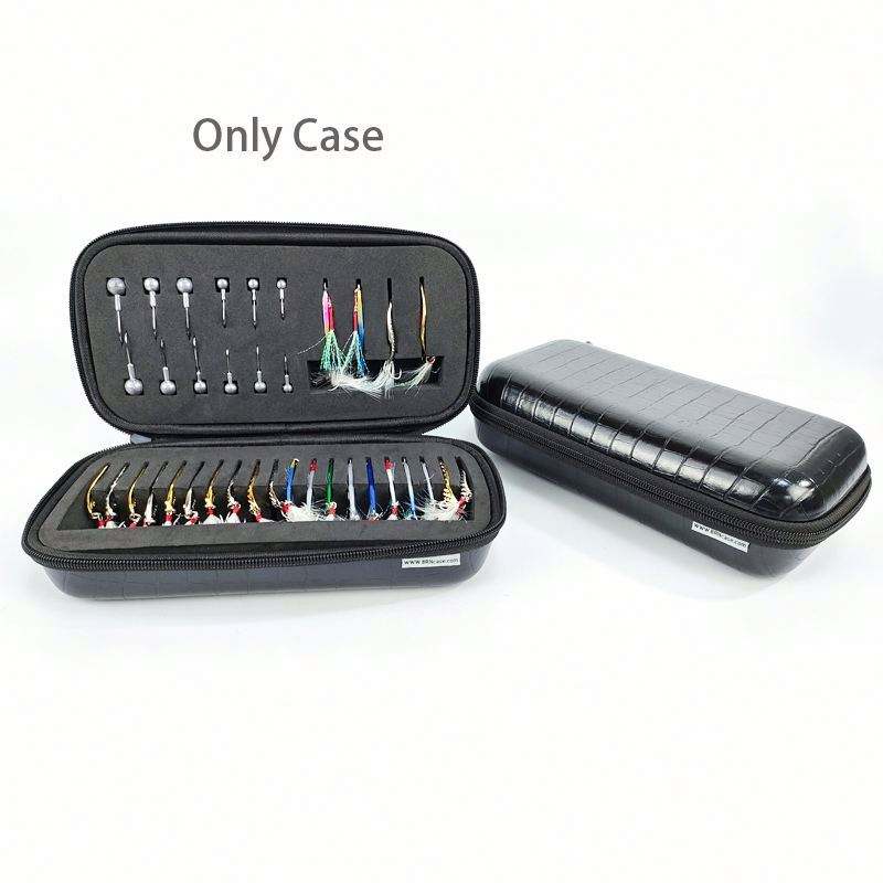 Boîte de rangement noire pour matériel de pêche, organiseur de plateau pour la pêche à la mouche avec boîte étanche pour leurres et jigs de voyage