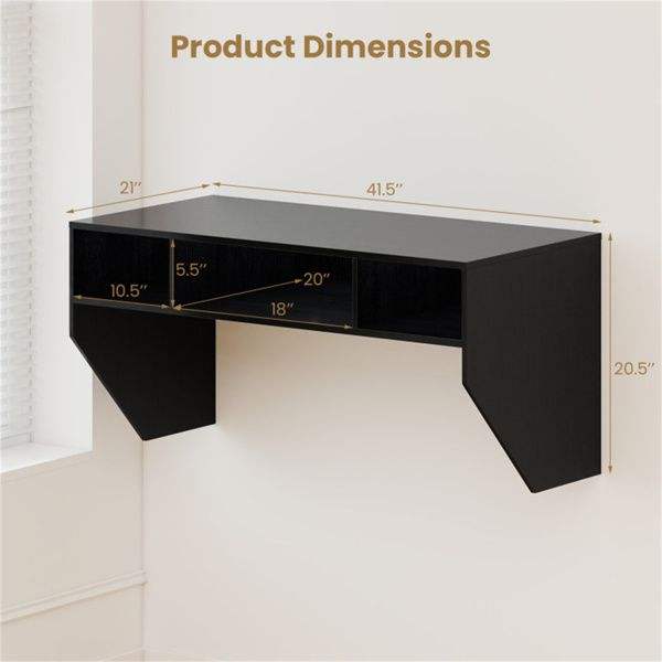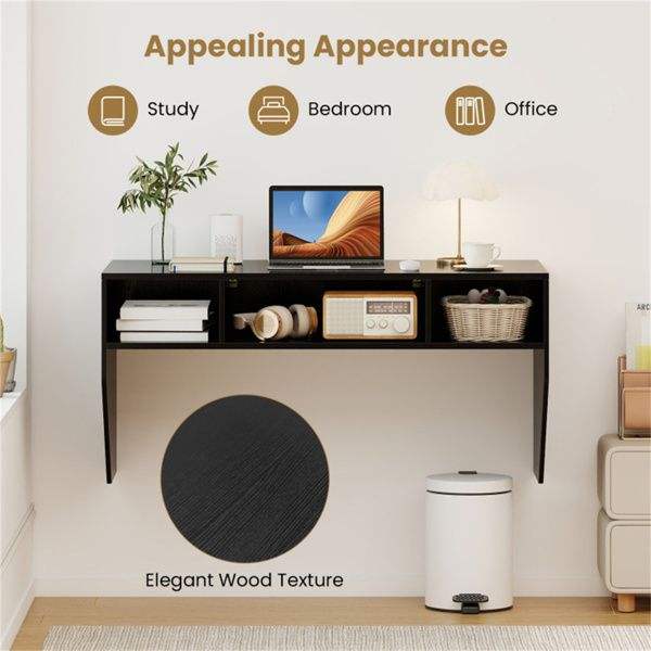 Bureau d'ordinateur flottant noir avec 3 cubes de rangement, poste de travail mural robuste en bois pour bureau à domicile