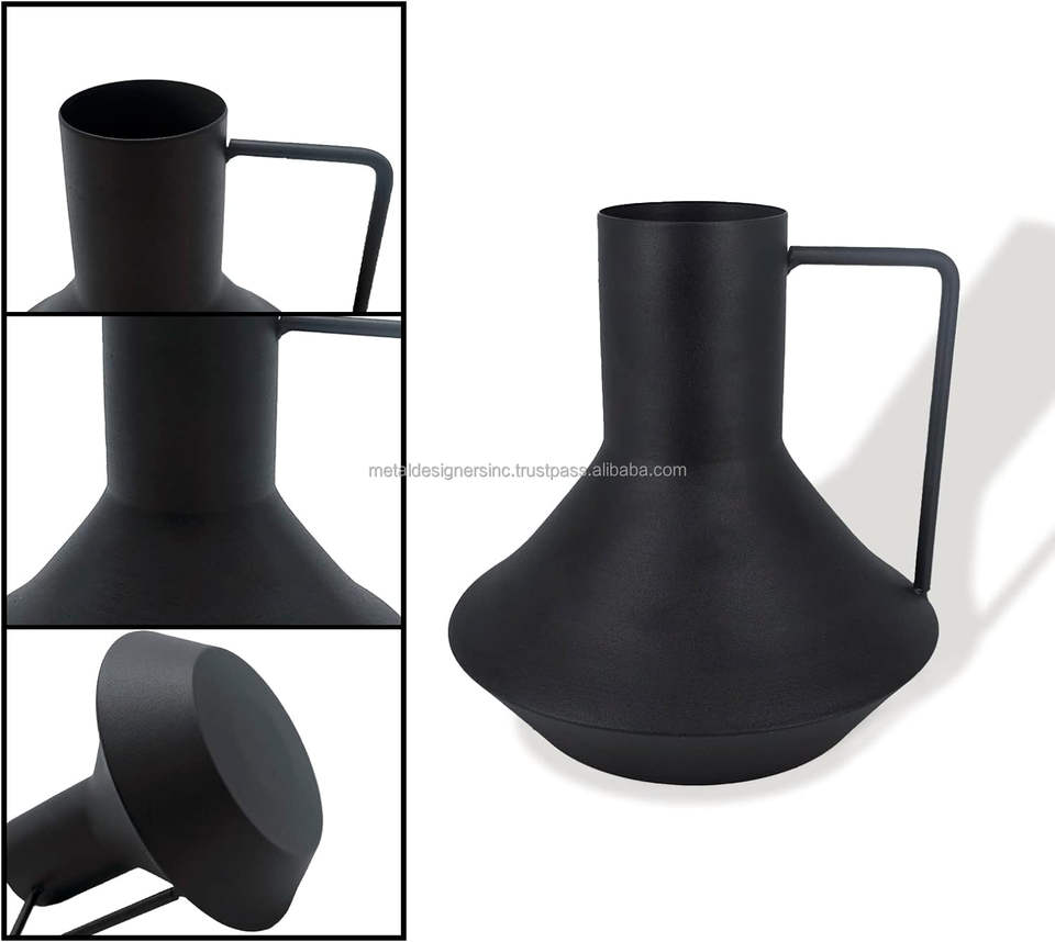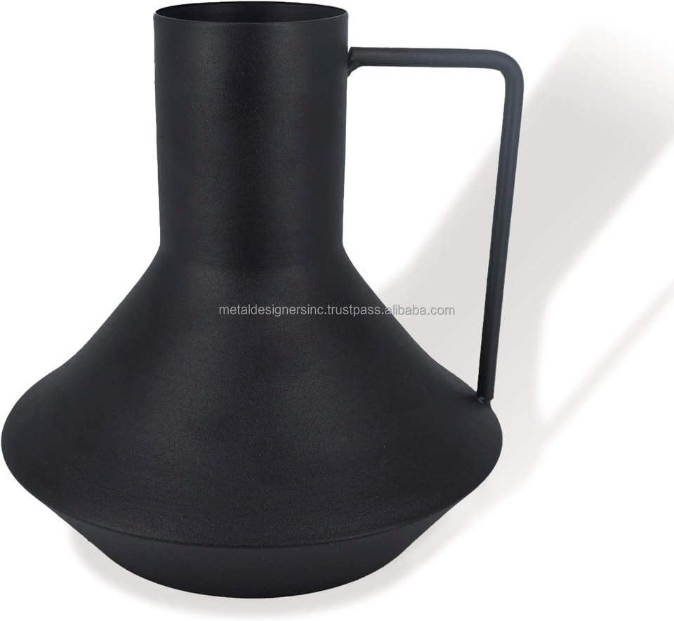 Vase à fleurs en métal noir de style moderne classique et glamour, incassable, durable, taille personnalisable, plat, décoratif, droit