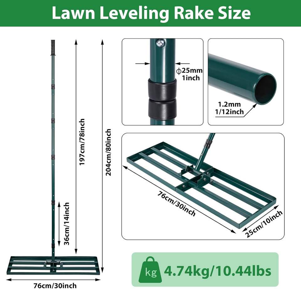 Râteau de nivellement de pelouse en acier pliant noir 45*25 76*25 116*25 plaque de sol poignée réglable pour herbe râteau noir pratique