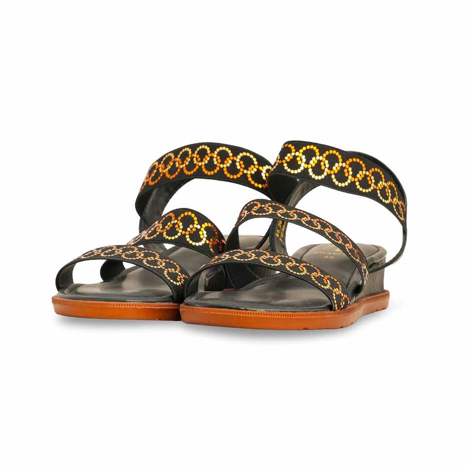 Black Formal Heeled Sandals FR7876 Elegant Slipper Design