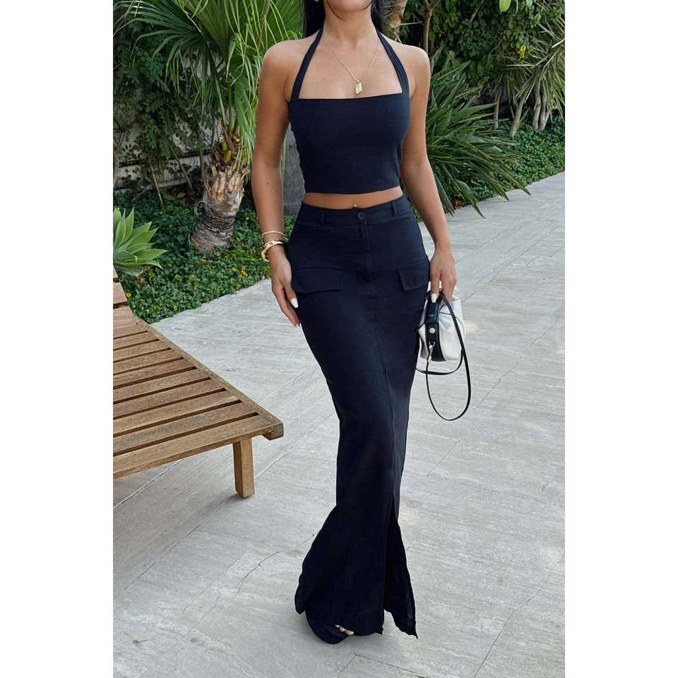 Costume formel noir avec jupe à boutons