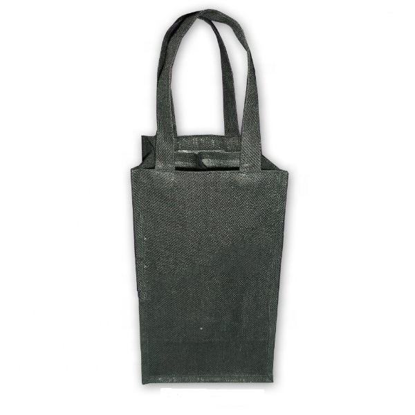 Sac de transport de vin noir à quatre bouteilles en jute laminé PP à poignée automatique pour emballage de cadeaux promotionnels imprimés personnels à usage industriel