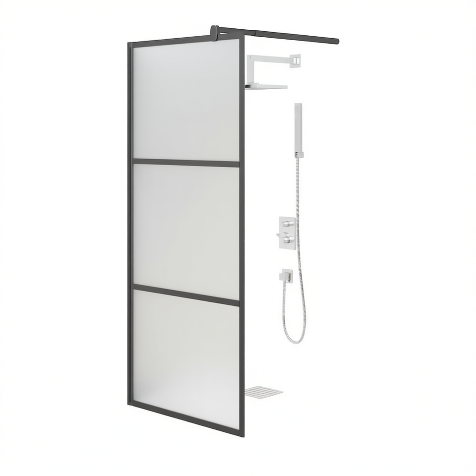Porte de douche coulissante en verre ESG givré noir 35,4x76,8 pouces avec cadre, design minimaliste