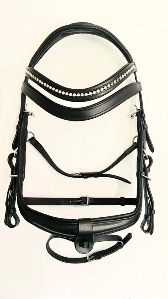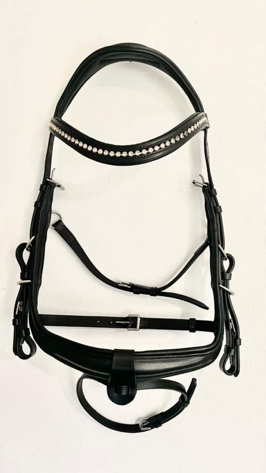 Black Full Leather Snaffle Bridle with Anatomic Headpiece & Noseband Reinforced Bridle Set