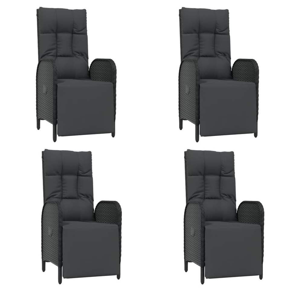 Ensemble de salle à manger de jardin noir 4 places en rotin résistant aux intempéries, mobilier d'extérieur de style contemporain