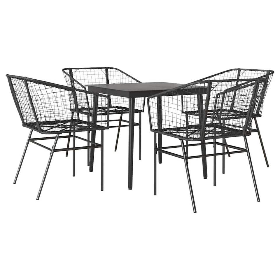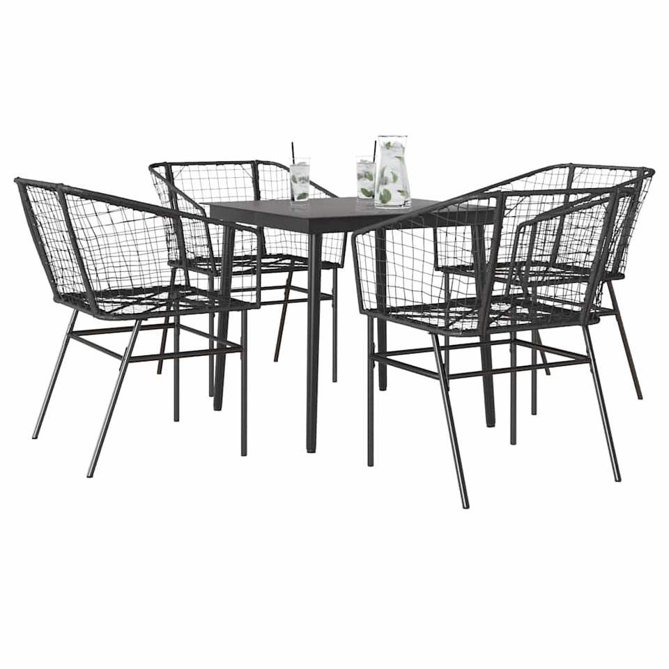 Ensemble de salle à manger de jardin noir 4 places en métal, mobilier d'extérieur contemporain résistant aux intempéries