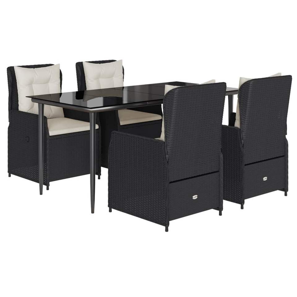 Ensemble de salle à manger de jardin en rotin noir 4 places, résistant aux intempéries, mobilier d'extérieur de style contemporain